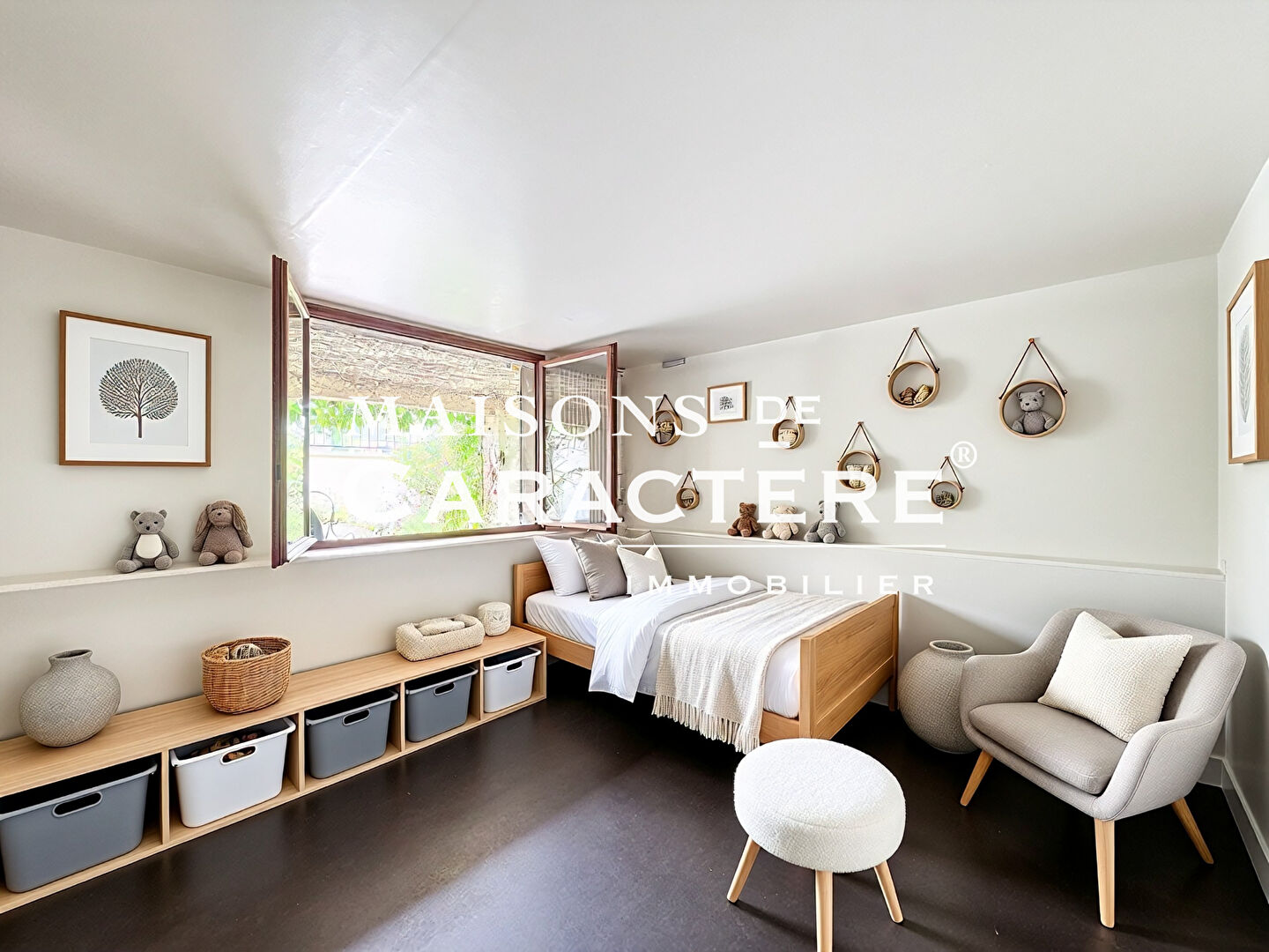La maison actuellement en partie à rénover est proposée avec des photos au réel et des visuels proposant de nouveaux choix de revêtements au sol ou des propositions de nouveaux aménagements intérieurs. (4.00 % honoraires TTC à la charge de l’acquéreur.)