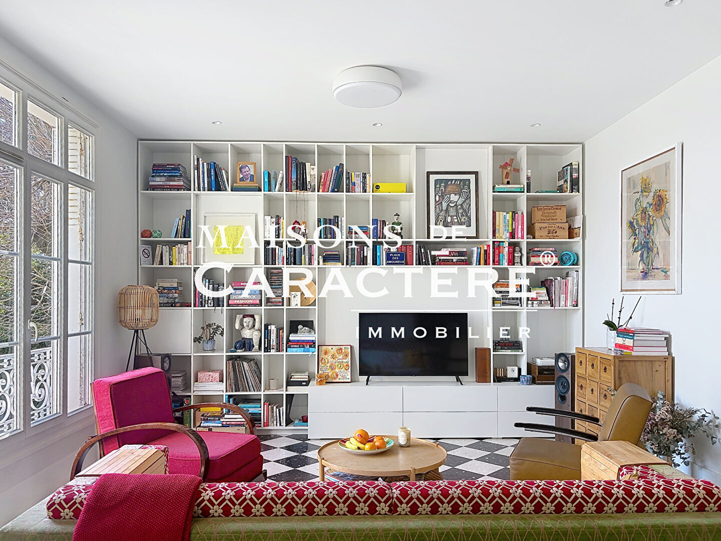 Accès en rez-de-chaussée vers une spacieuse réception traitée en Open Space avec Salon, espace Salle à manger avec vue jardin et accès terrasse et pergola, cuisine équipée avec accès direct à la 2eme terrasse Sud.