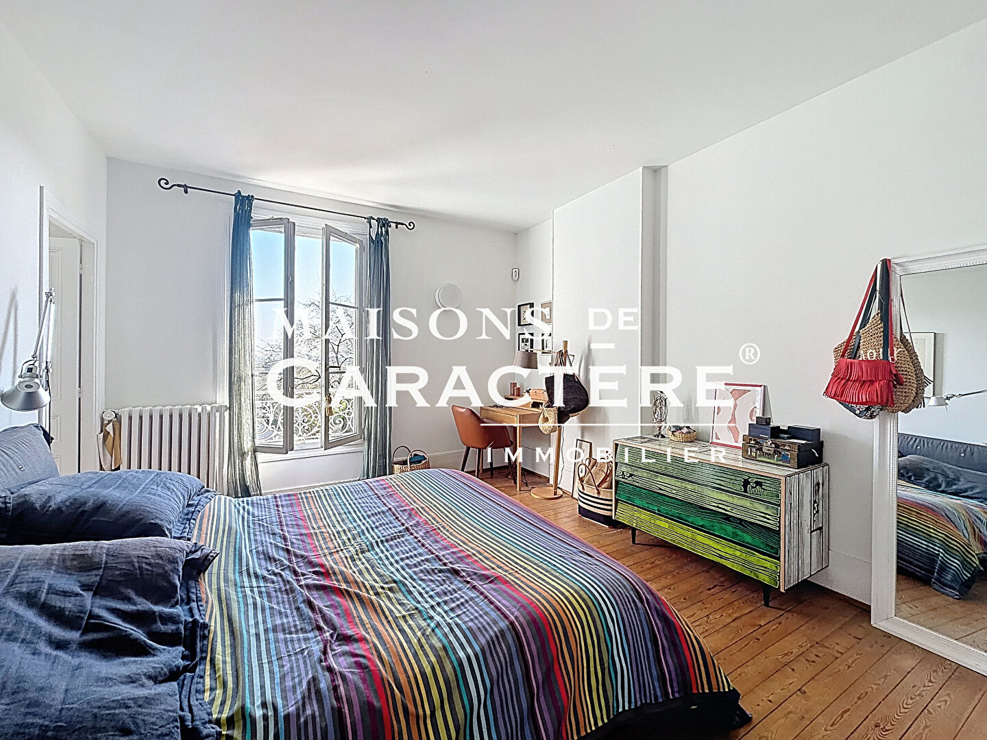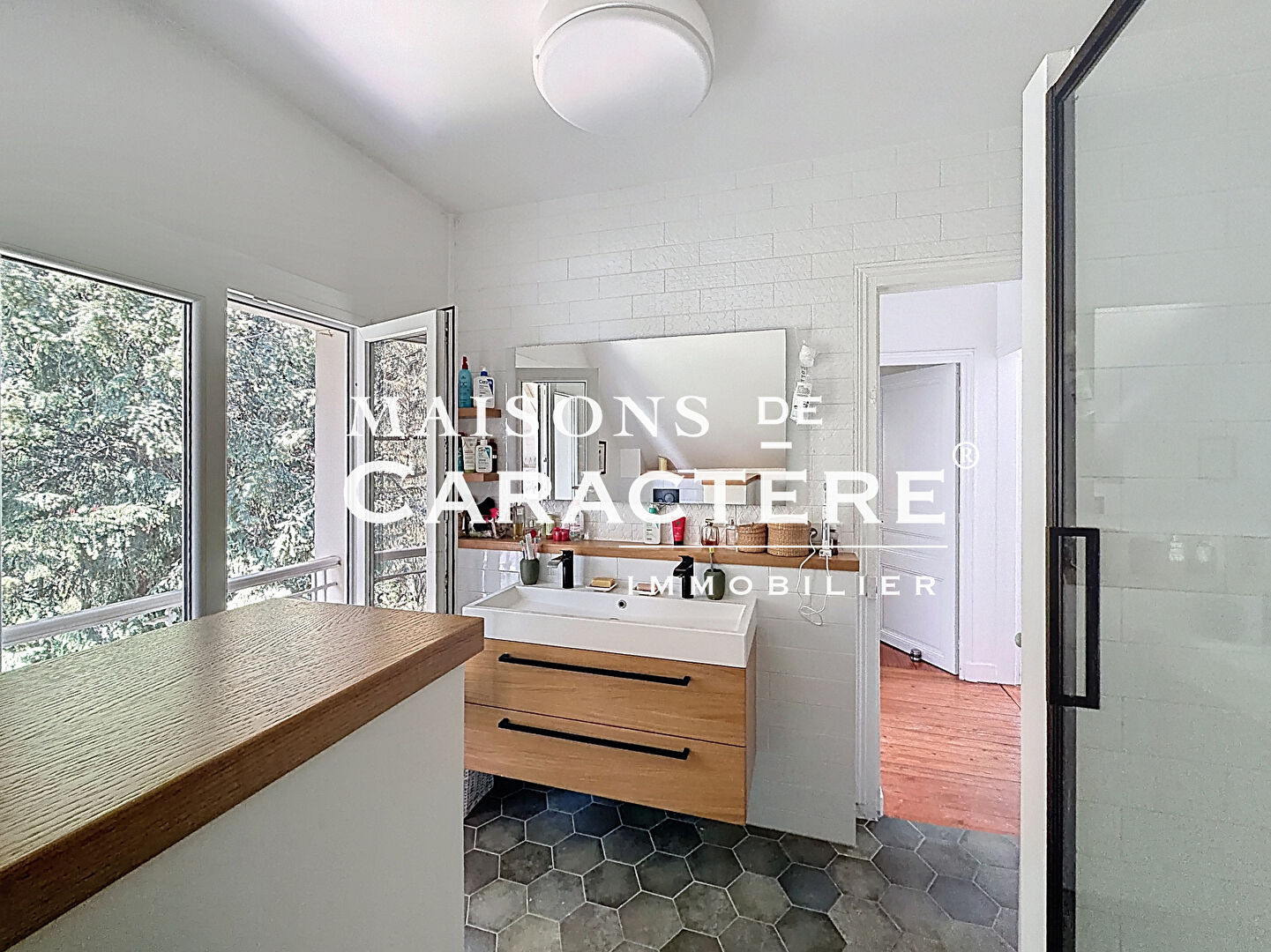 Un premier étage présente une Suite Parentale composée d’une chambre, d’une seconde chambre intégrée en pièce dressing avec accès Salle de bains, wc indépendants ainsi qu’une 3eme chambre, idéale pour un jeune enfant ou une chambre d’amis.