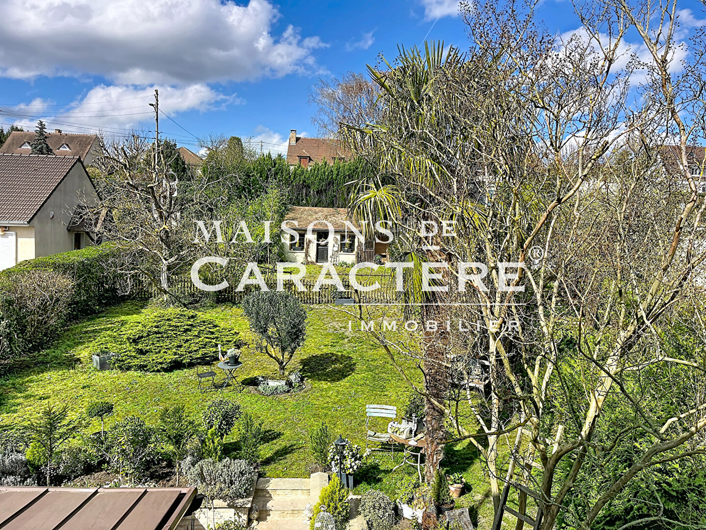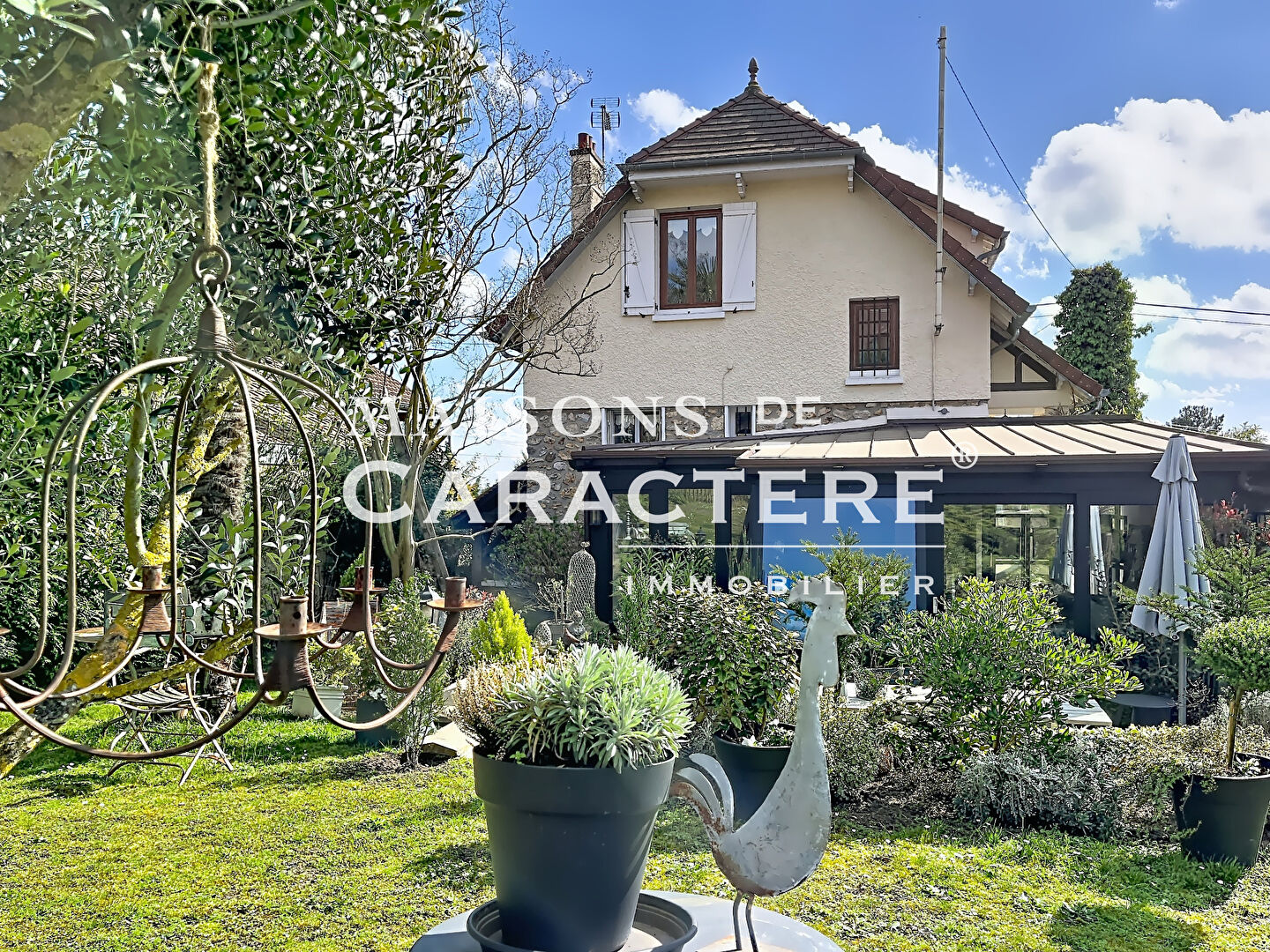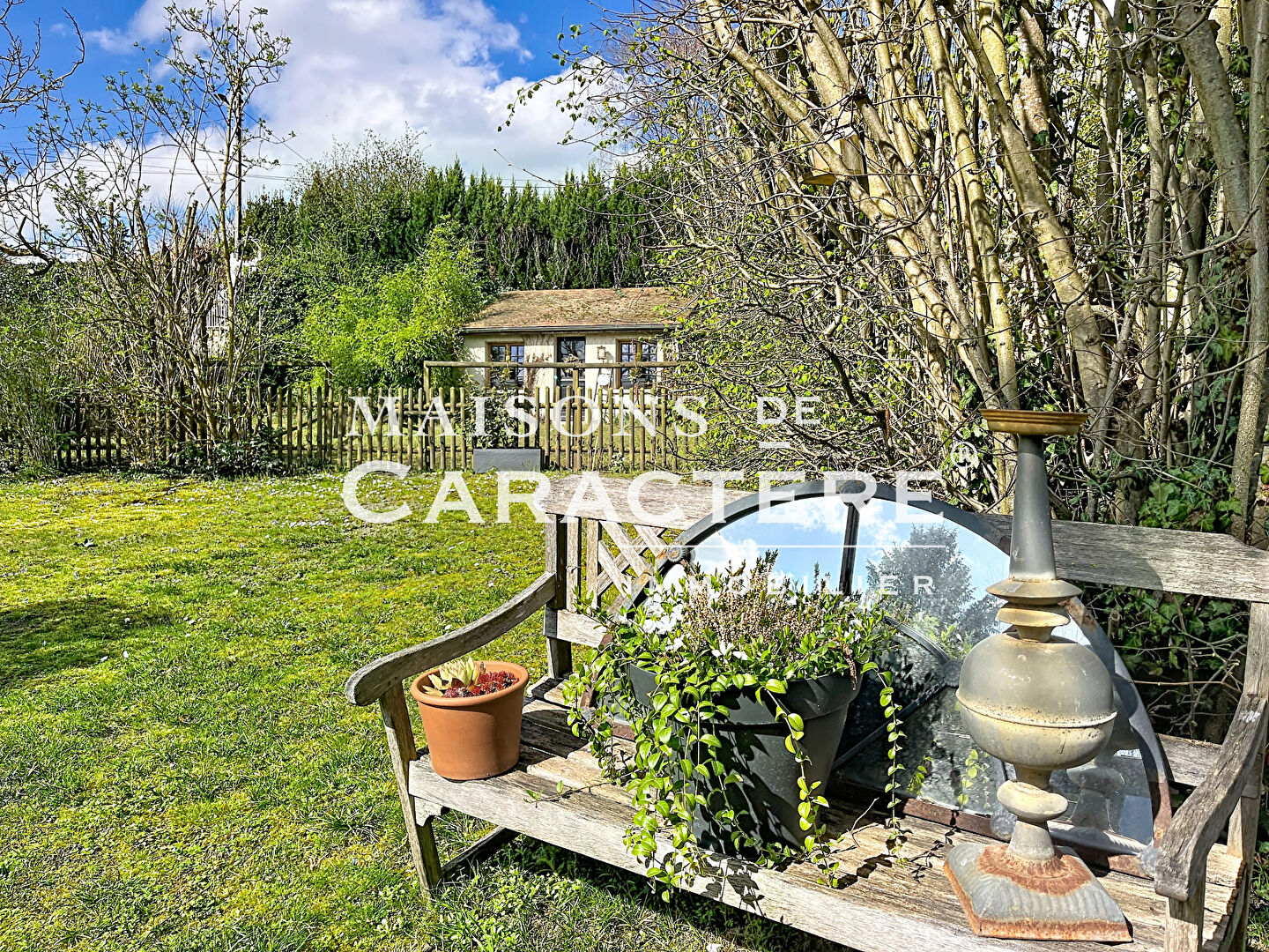 C’est depuis son jardin clos de 776 m², que MAISONS DE CARACTERE IMMOBILIER vous invite tout d’abord au fond de la parcelle, au sein de sa remise de 14m2 actuellement à l’usage de stockage, à réhabiliter pour vos besoins – Maison d’amis, Bureau ou atelier – avant de découvrir la maison principale et sa distribution des plus originales :