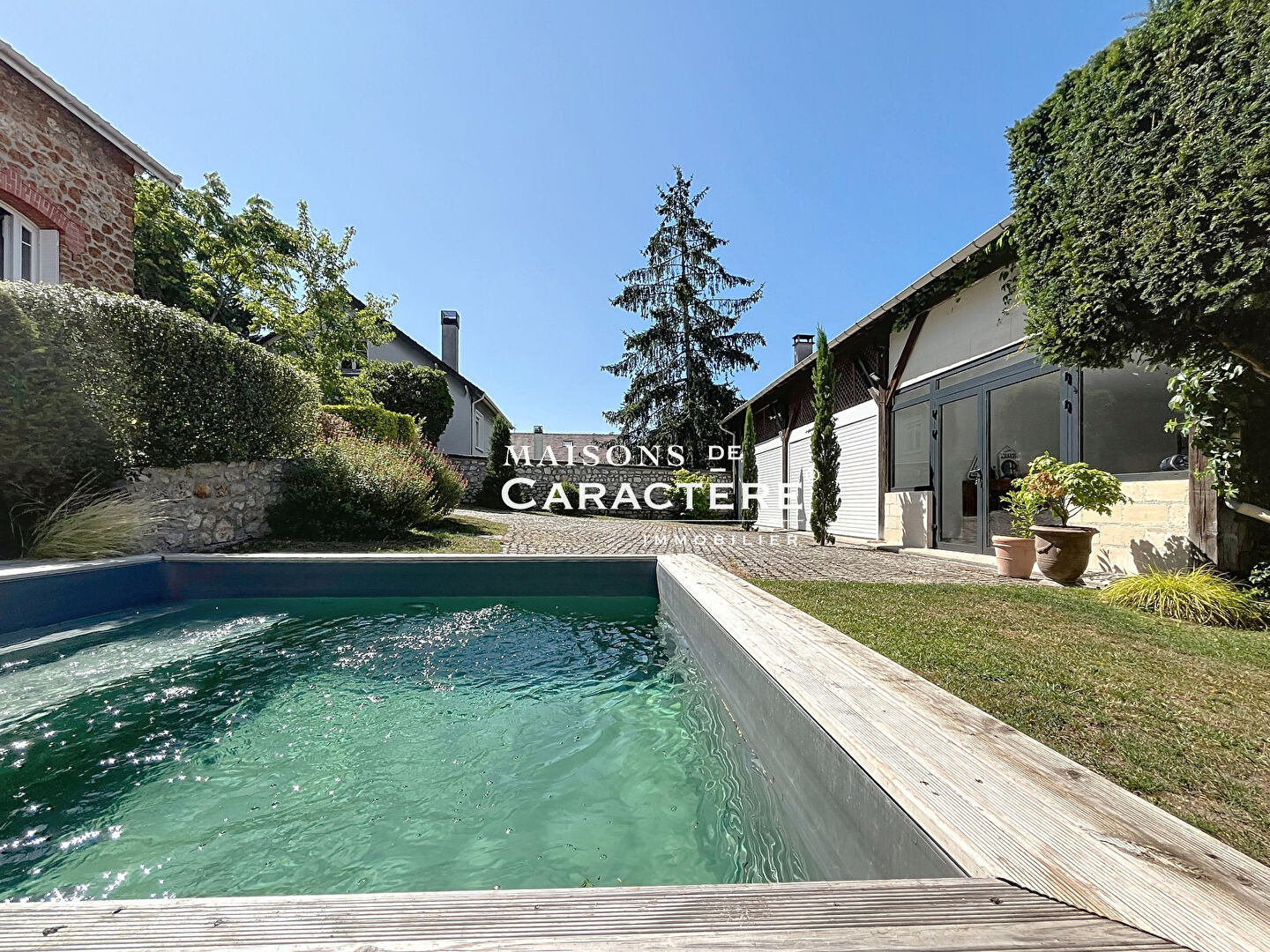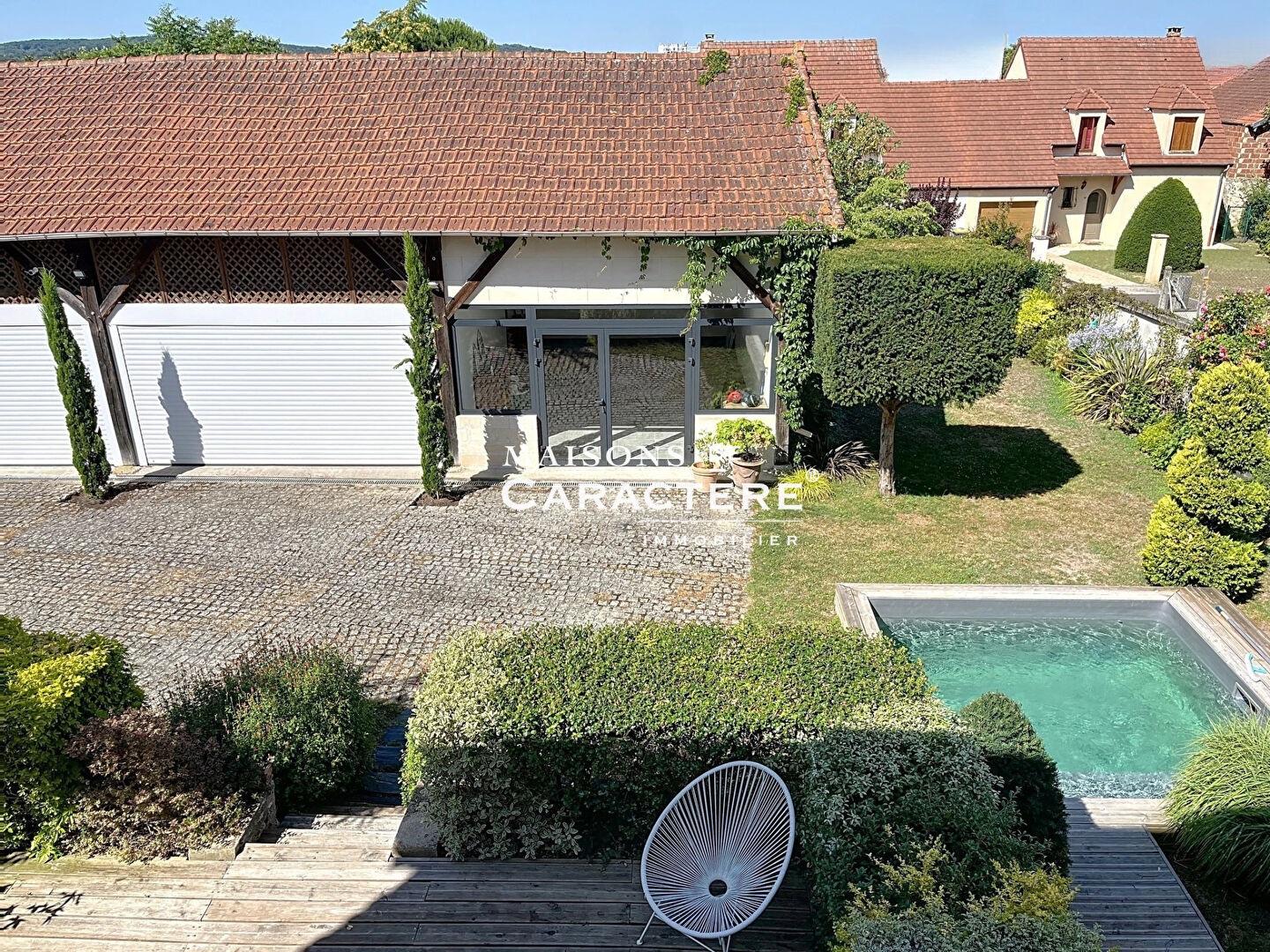 { 2 bâtis individuels se faisant écho sur une parcelle piscinée et arborée de 925m2 : ne serait-ce pas LA REPONSE IMMEDIATE à tous vos besoins ? } Maisons de Caractère Immobilier