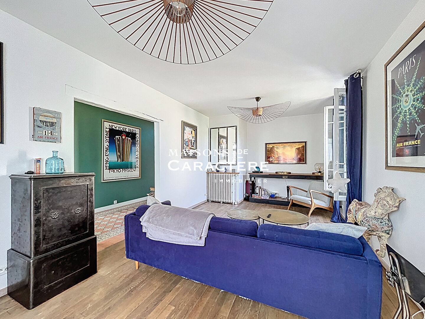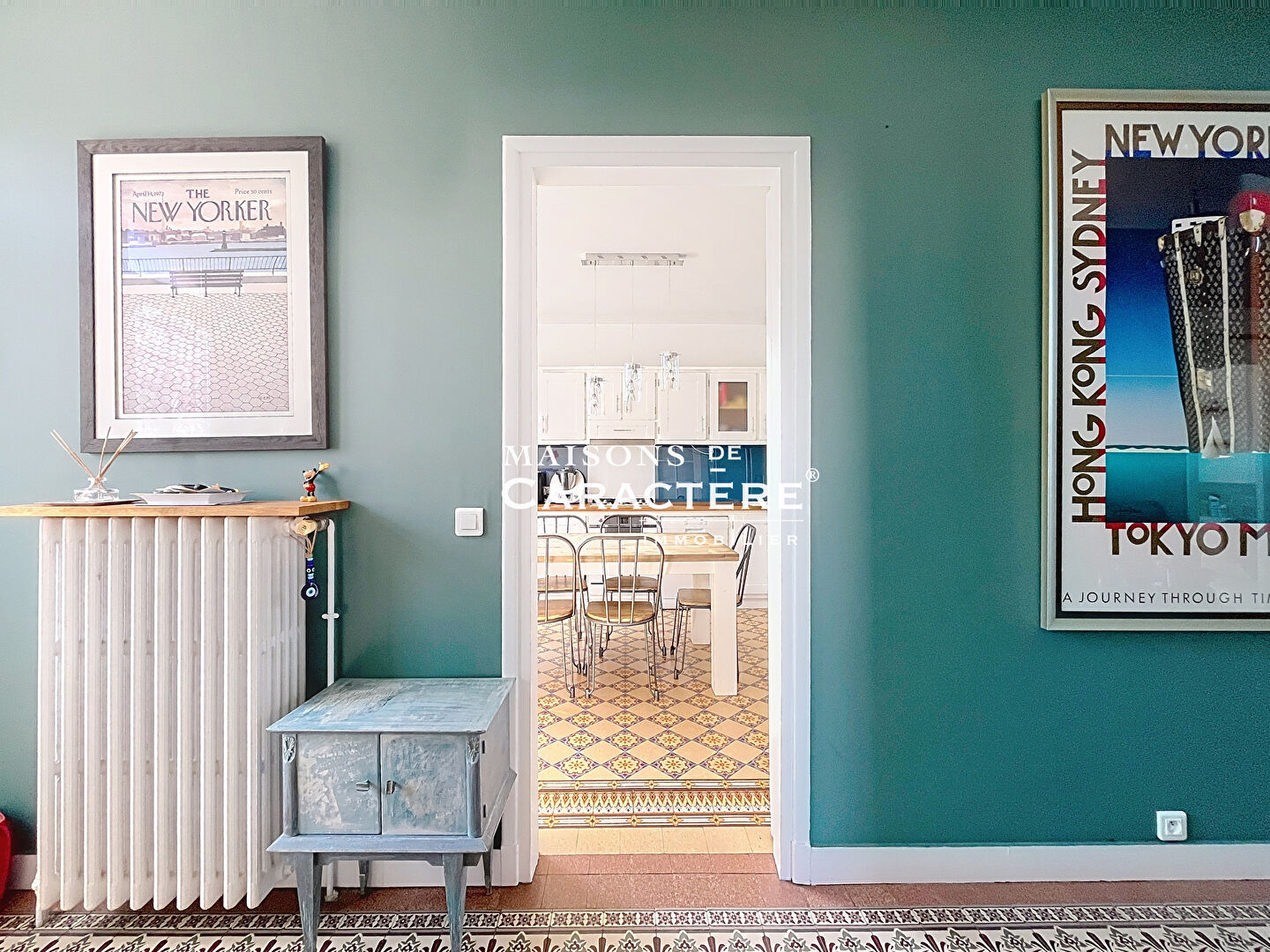 Derrière la porte d’entrée avec impostes, une Noble Entrée avec carreaux de ciment d’époque s’ouvre désormais sur une réception où l’on retrouve le triptyque de choc // parquets Chêne massif ancien, radiateurs en fonte restaurés, sans oublier ses fenêtres sur-mesure « Cintrées » PVC Double vitrage qui, pour notre plus grand plaisir, se retrouveront dans toute la maison //.