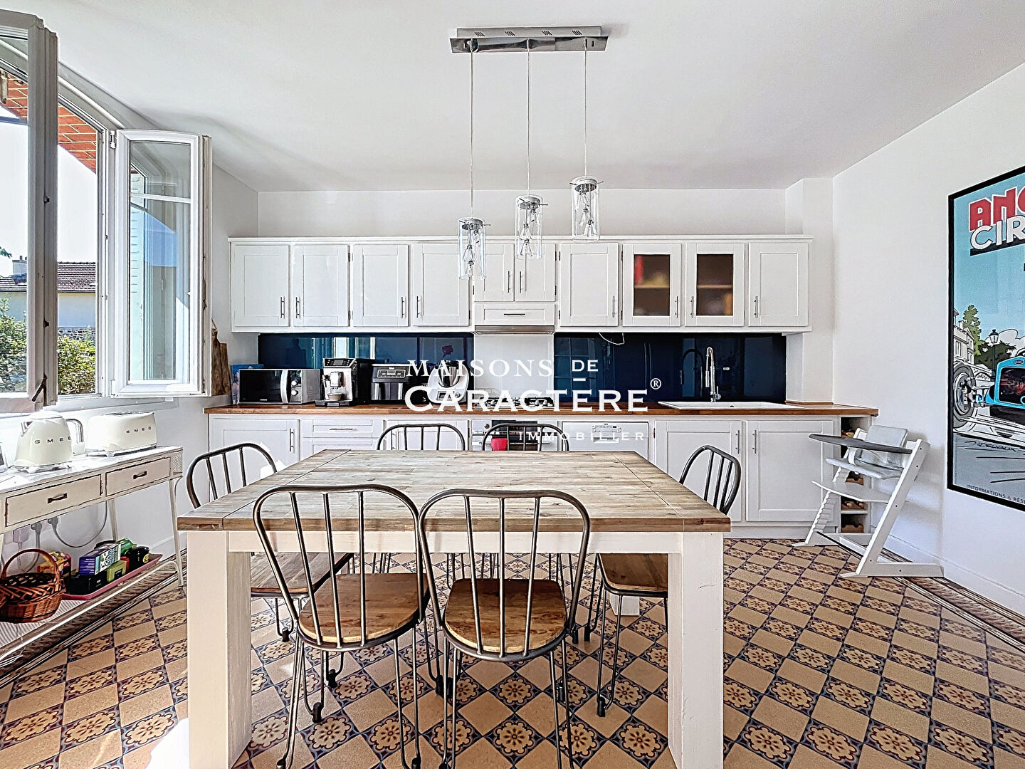 — D’un côté, cette superbe Meulière restaurée sur 3 niveaux s’impose nettement comme un parfait CLEF EN MAIN où le mélange des genres a été subtilement travaillé :