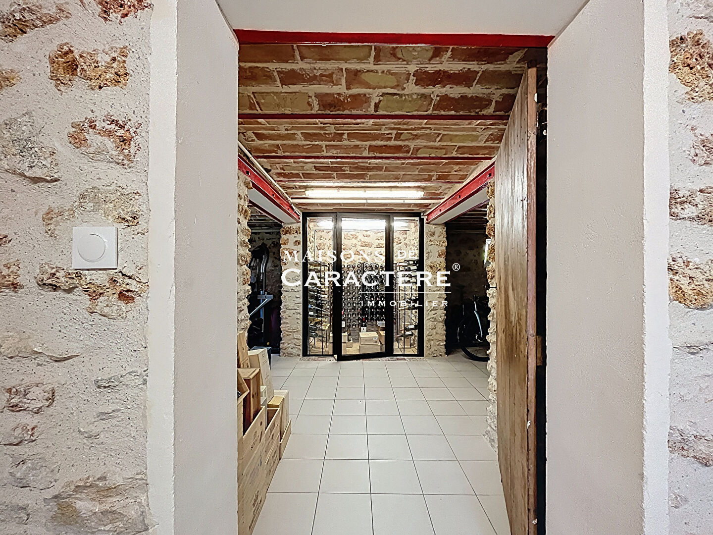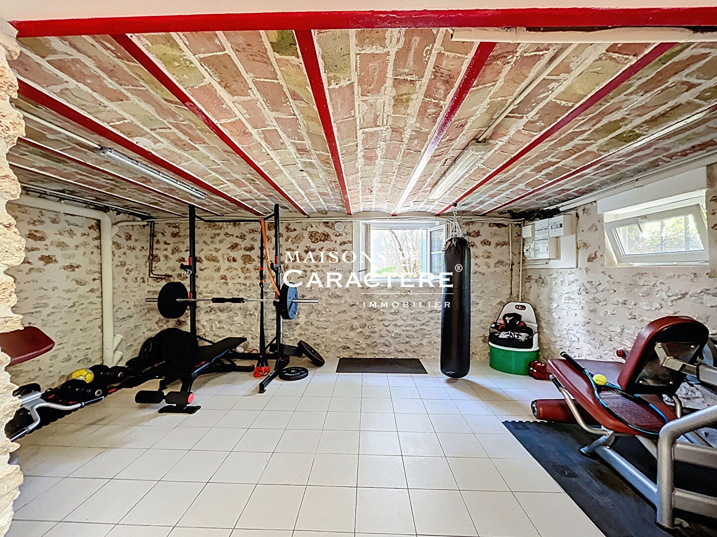 Passons aux choses sérieuses au sous-sol : Salle de sport, Pièce buanderie-chaufferie, Pièce de stockage carrelée, et pas moins de 2 CAVES à VIN sur-mesure pour les amateurs.